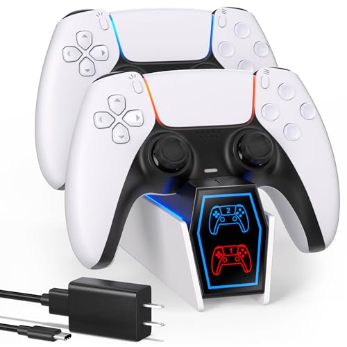 Feirsh Cargador de Controles PS5, Estación de Carga Dual para Dualsense PS5 con Adaptador de Carga rápida USB Tipo C y Dual LED Indicador,Protección de Chip de Seguridad