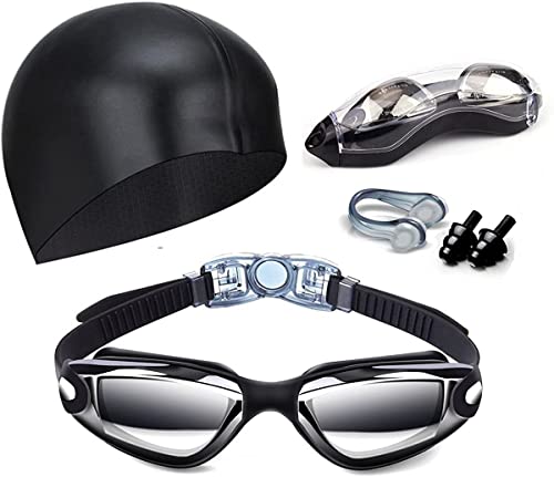 – Diseño Innovador: La caja de gafas está equipada con gafas de natación impermeables, 2 tapones para los oídos, una pinza para la nariz, un gorro de natación y esto es realmente amigable para un nadador principiante. El diseño de lente de una pieza maximiza el campo de visión y la nueva versión de gafas de natación le brindará una perspectiva completamente nueva. El ajuste universal se adapta a todos, ¡y es tan cómodo!